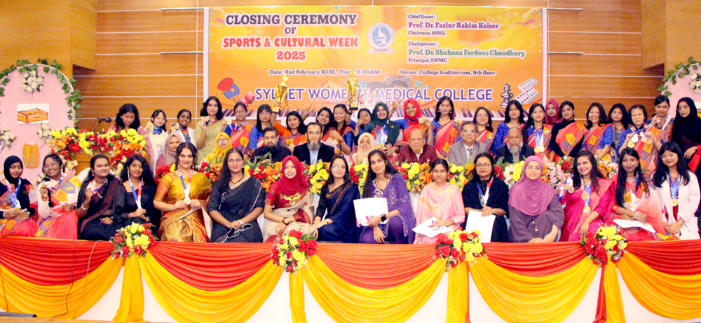 সিলেট উইমেন্স মেডিকেল কলেজের ক্রীড়া ও সাংস্কৃতিক সপ্তাহ-২০২৫ এর পুরস্কার বিতরণ ও সমাপনী অনুষ্ঠান সম্পন্ন হয়েছে। রোববার (২ ফেব্রুয়ারি) সকাল ১১টায় কলেজ ক্যাম্পাসে পুরস্কার বিতরণী অনুষ্ঠানে সভাপতিত্ব করেন কলেজের অধ্যক্ষ অধ্যাপক ডা. শাহানা ফেরদৌস চৌধুরী।