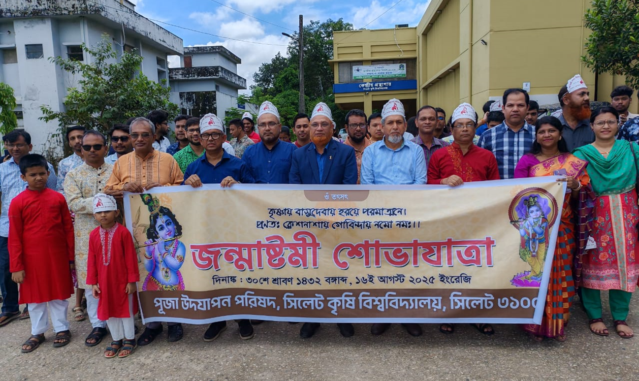 শুভ জন্মাষ্টমী উপলক্ষে ১৬ আগস্ট শনিবার সকালে সিলেট কৃষি বিশ্ববিদ্যালয়ে (সিকৃবি) বর্ণাঢ্য শোভাযাত্রার আয়োজন করা হয়। প্রশাসনিক ভবনের সামনে থেকে পূজা উদযাপন পরিষদের উদ্যোগে এ শোভাযাত্রা অনুষ্ঠিত হয়।