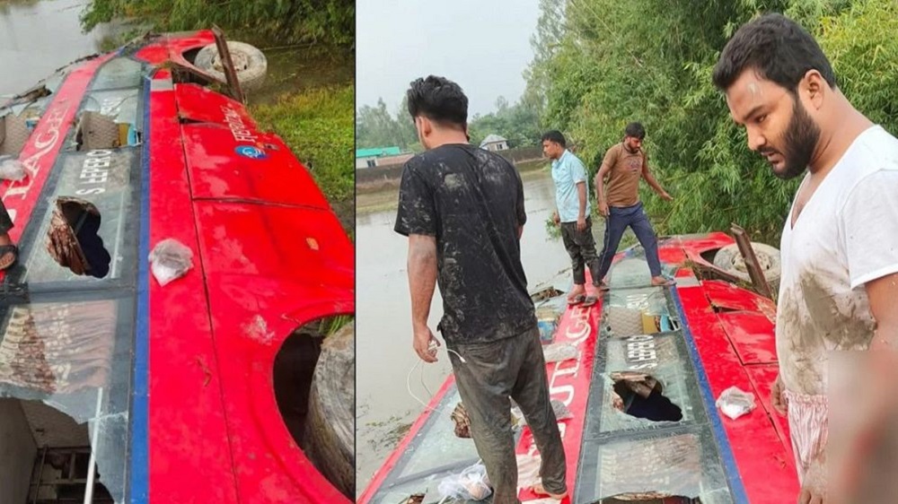 দিনাজপুরের পার্বতীপুরে একটি যাত্রীবাহী বাস নিয়ন্ত্রণ হারিয়ে সড়কের পাশের জলাশয়ে পড়ে যায়, এতে গণঅধিকার পরিষদের মুখপাত্র ফারুক হাসানসহ অন্তত ১৫ জন আহত হয়েছেন। দুর্ঘটনা রোববার (২৪ আগস্ট) ভোরে উপজেলার আমবাড়ি এলাকায় ঘটে।