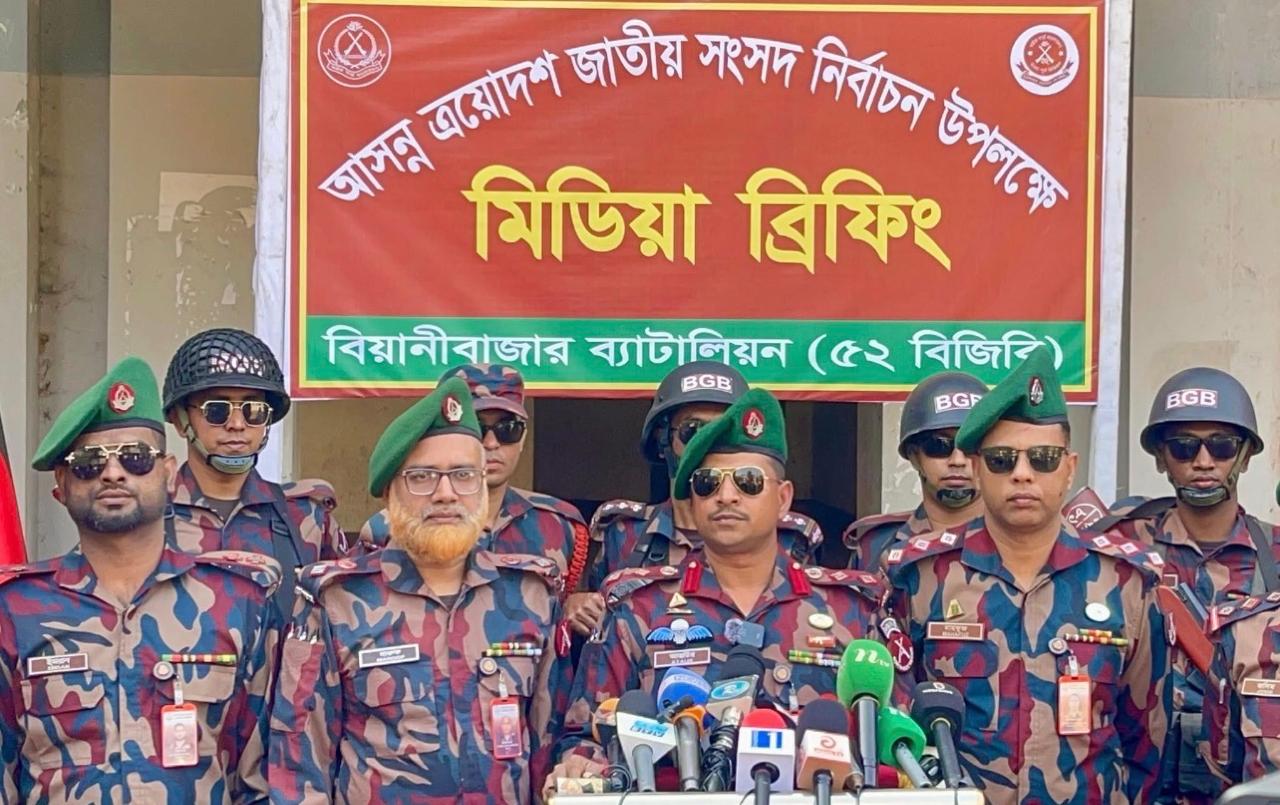 ব্রিফিংয়ে তিনি জানান, অবাধ, সুষ্ঠু ও নিরপেক্ষ নির্বাচন নিশ্চিত করতে বর্ডার গার্ড বাংলাদেশ নিরলসভাবে দায়িত্ব পালন করছে। বিয়ানীবাজার ব্যাটালিয়নের দায়িত্বপূর্ণ এলাকায় সিলেট ও মৌলভীবাজার জেলার চারটি উপজেলার ৩০৫টি ভোটকেন্দ্রের নিরাপত্তায় সাড়ে ১২ প্লাটুন বিজিবি মোতায়েন করা হয়েছে।